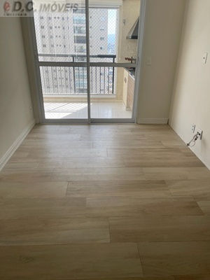 A cozinha americana com piso de porcelanato traz aquele toque contemporâneo que se conecta perfeitamente à sacada gourmet, ideal para relaxar ou receber amigos.